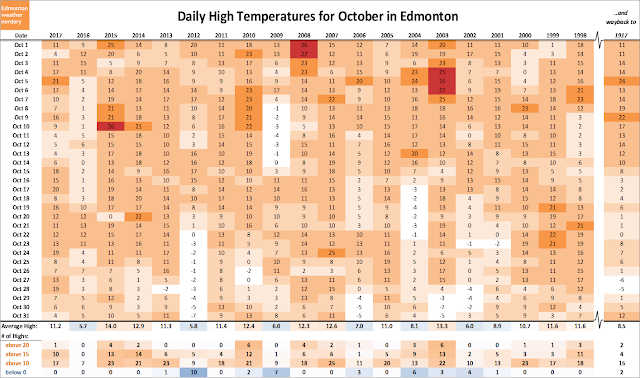 As an aside, November of 1917 (on the right side of this table) was really, really warm. It's average High of 10.6°C was 5°C warmer than anything we've seen in the last 20 years, and it was 14°C warmer than November 2017.