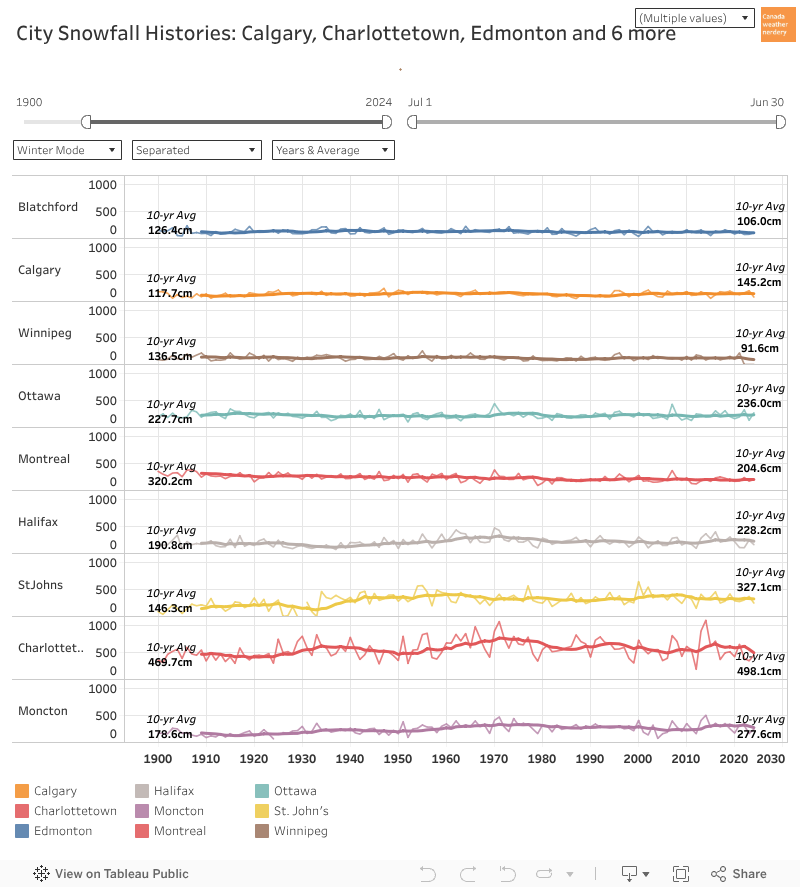 But the east coast cities are all over 200cm, and Charlottetown is near 500cm.